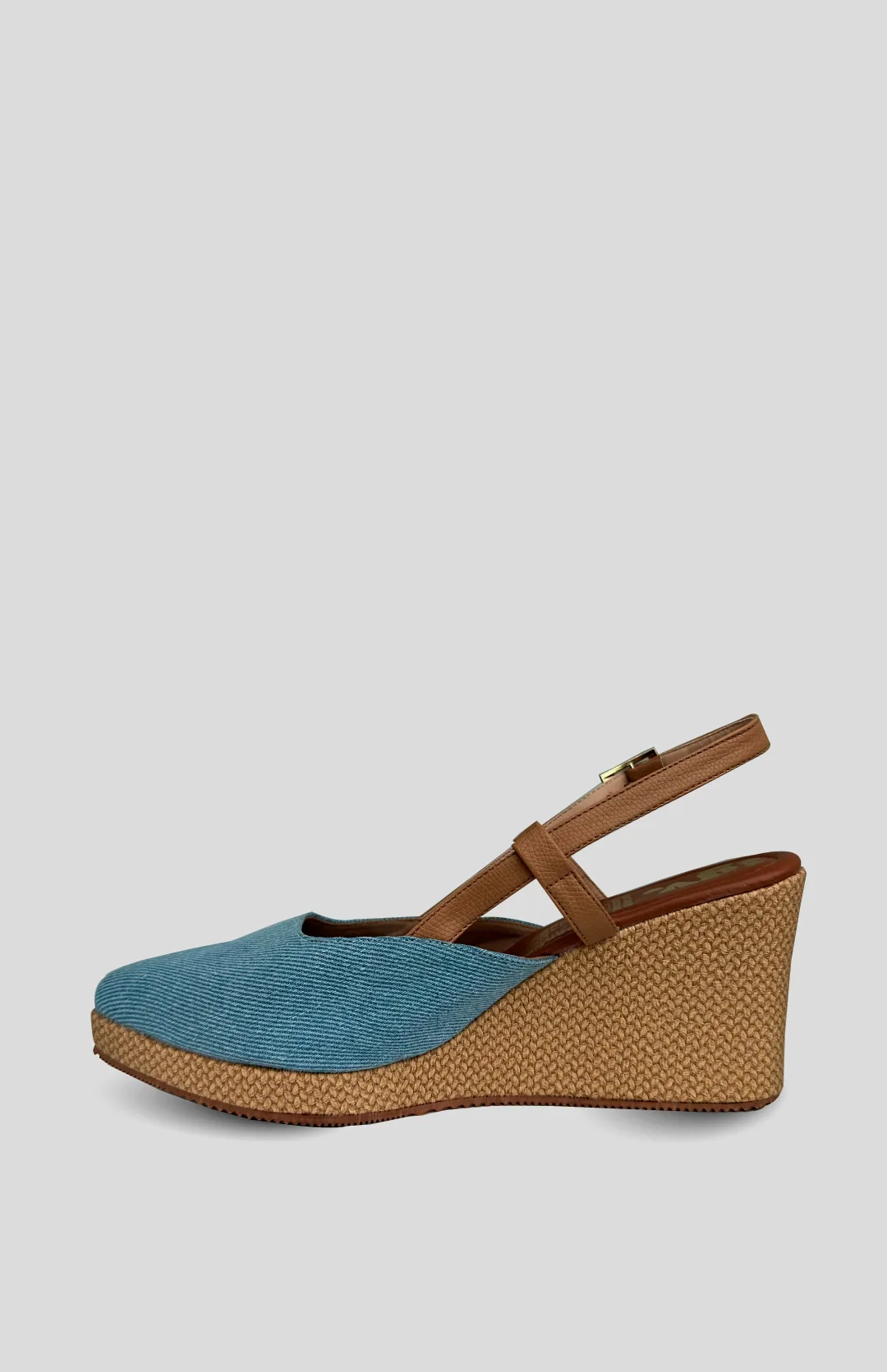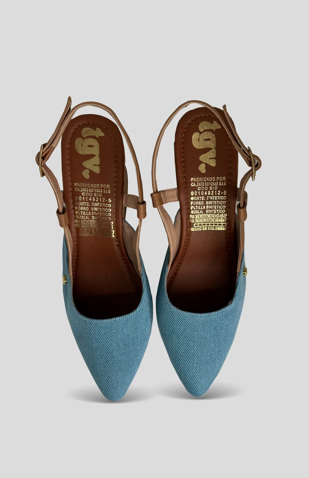Tacón de jean en sintético, con suela sintética y plataforma con altura de 7 centímetros.