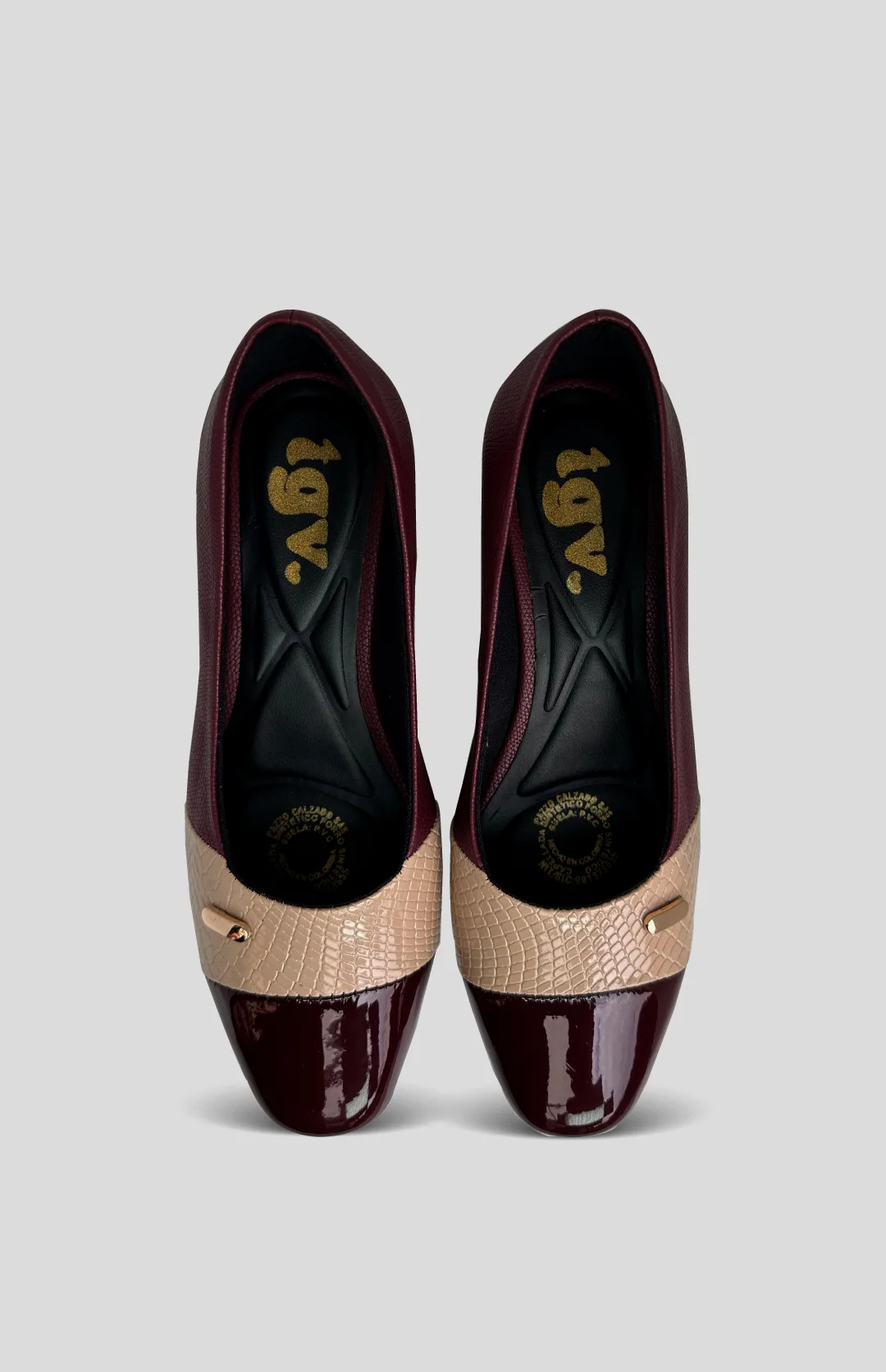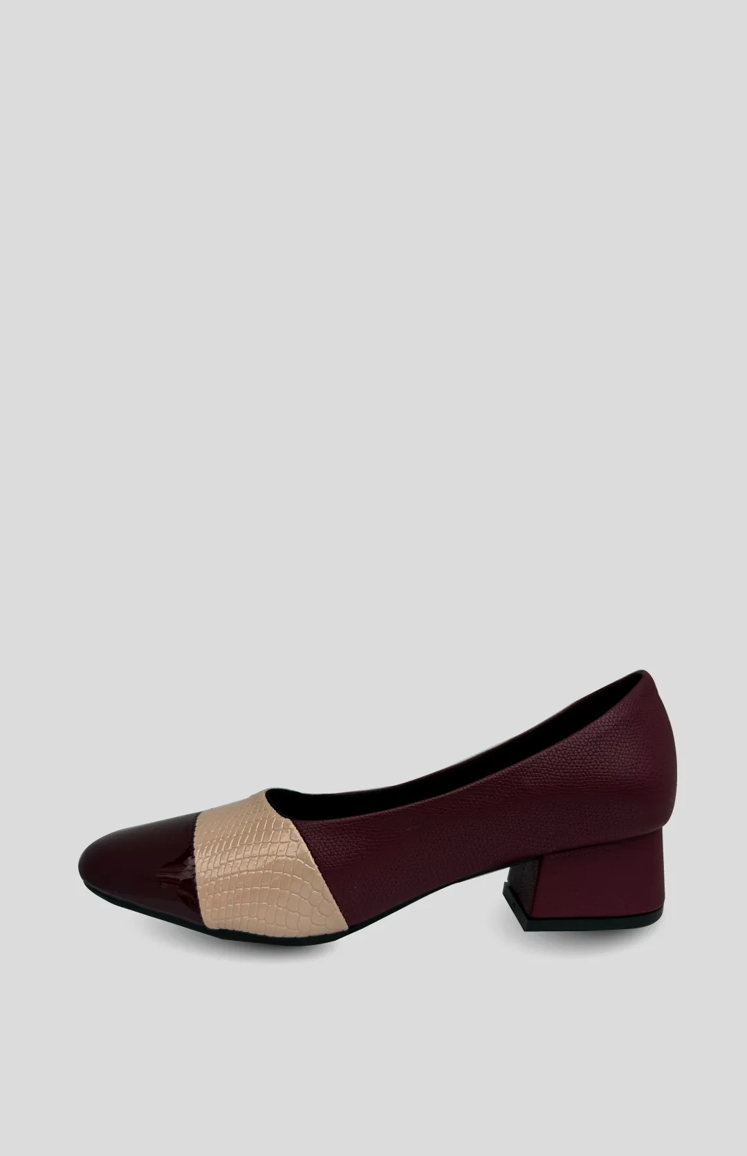 Tacón en sintético, con suela pvc que permite mayor durabilidad y tacón con altura de 3,5 centímetros.