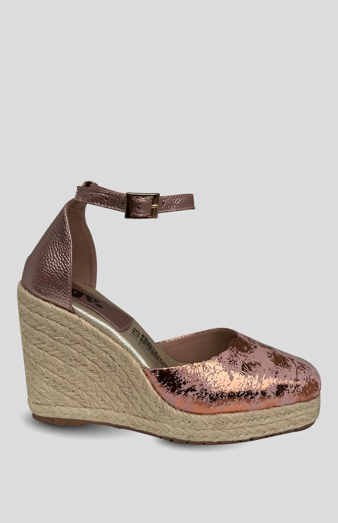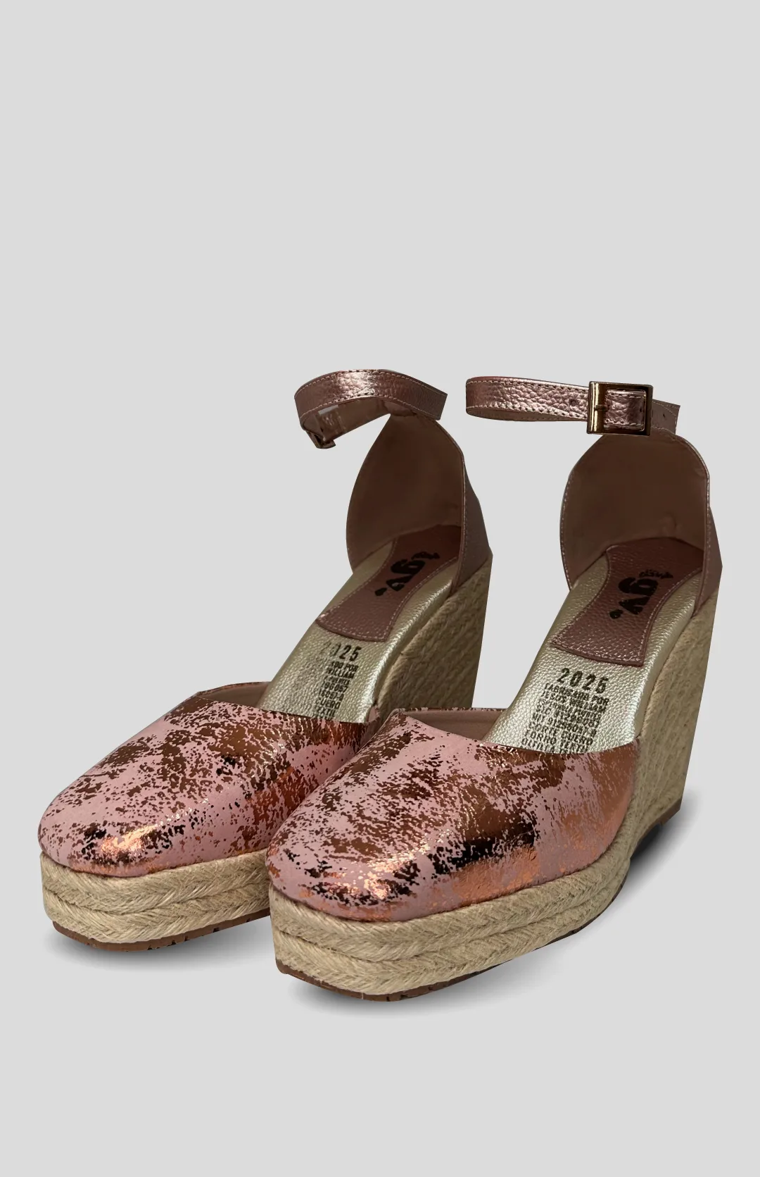 Tacon en cuero, estampado, suela sintetica en yute y altura de 10 centimetros.
