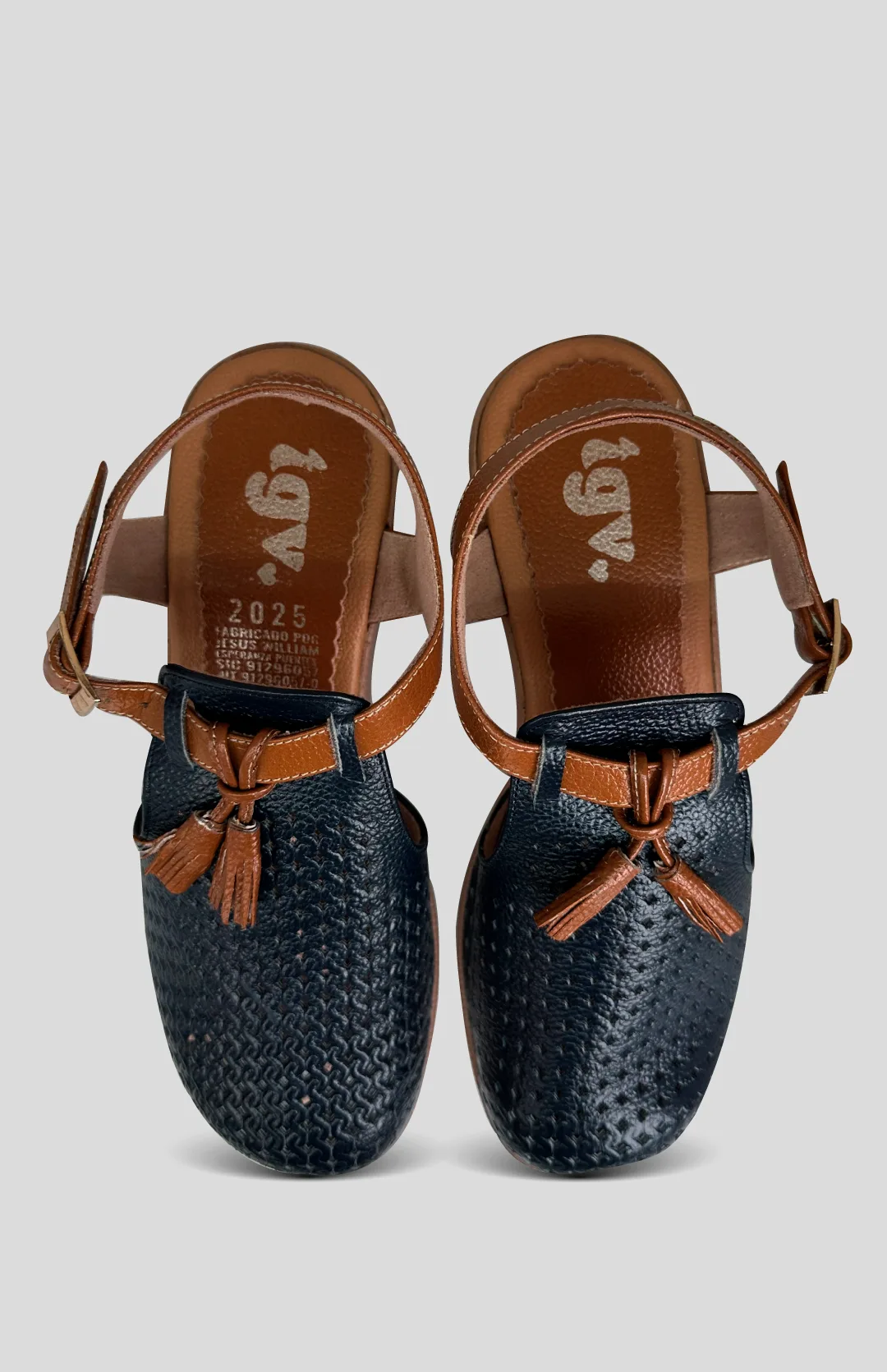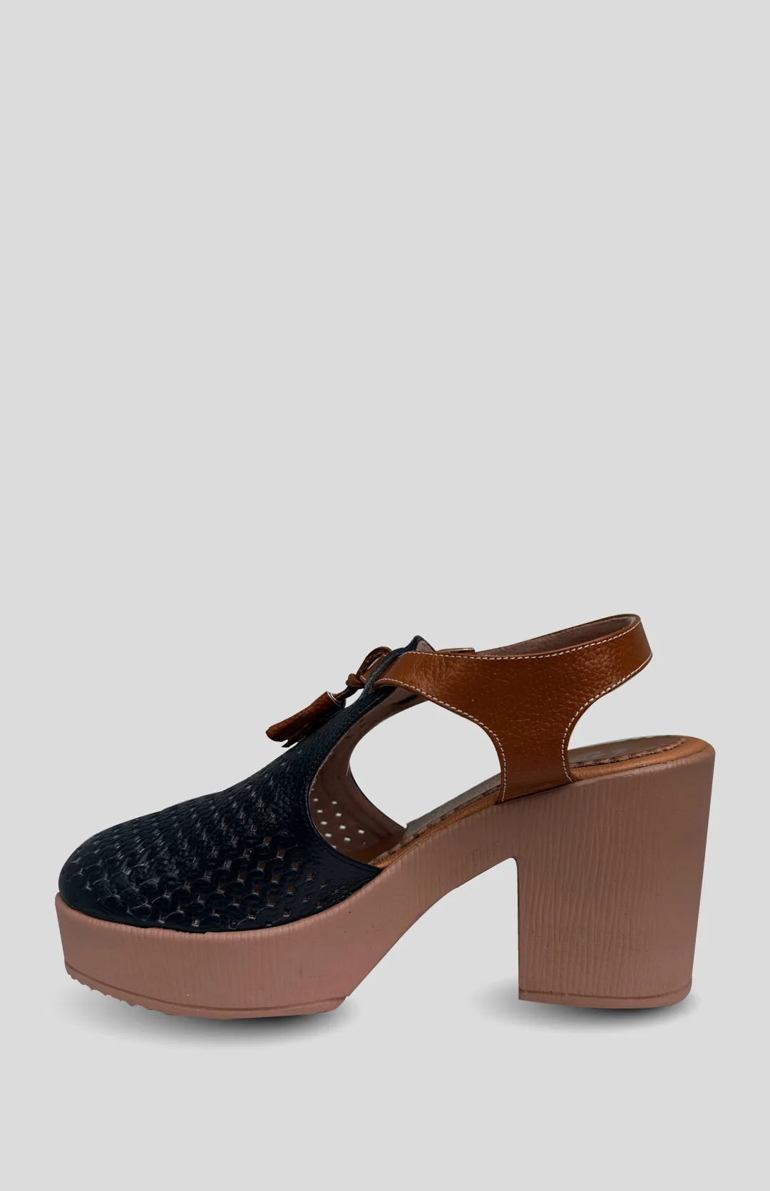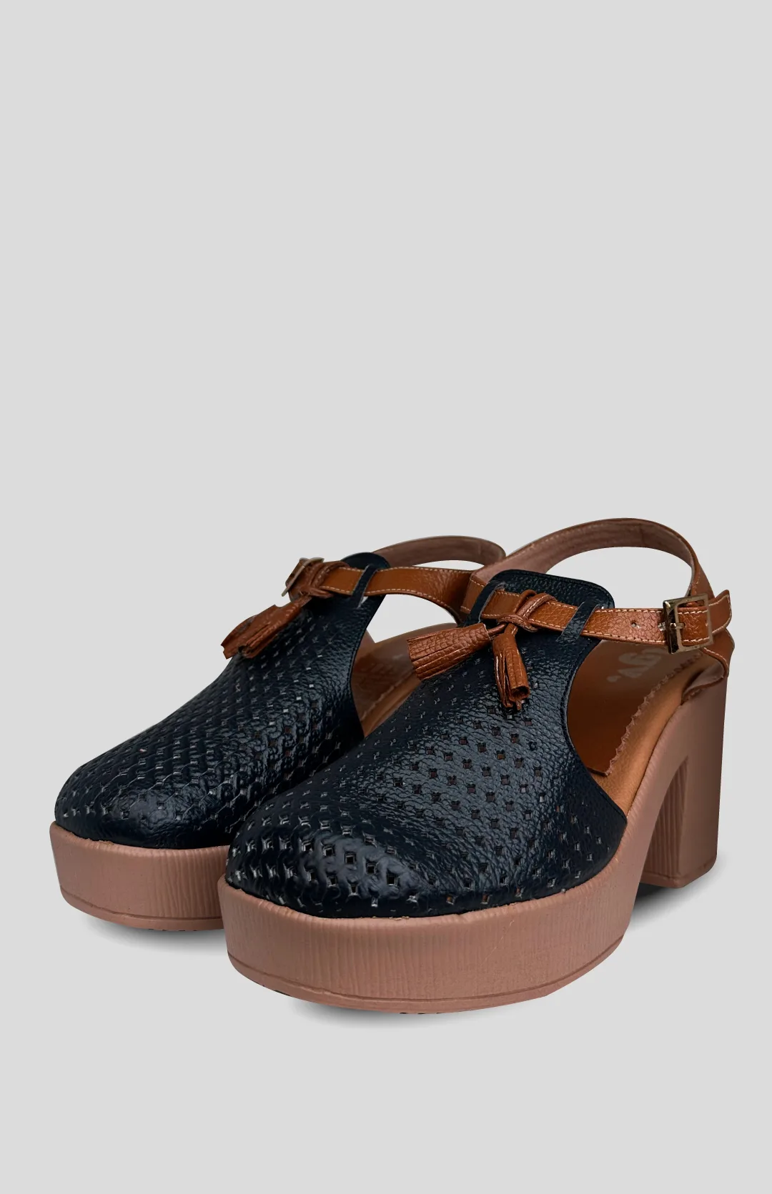 Tacon en cuero, suela sintetica ultraliviana y altura de 7,5 centimetros.